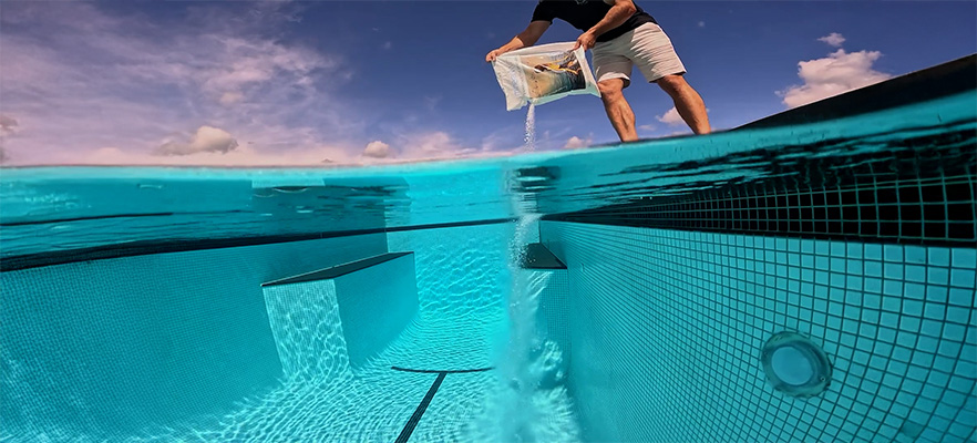 Instead of relying on a traditional sanitisation system, this pool uses Mineral Swim™, which converts the pool into a magnesium pool.